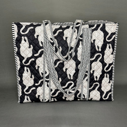 Black & White Chinese Tiger Theme Quilted Tote Bag
