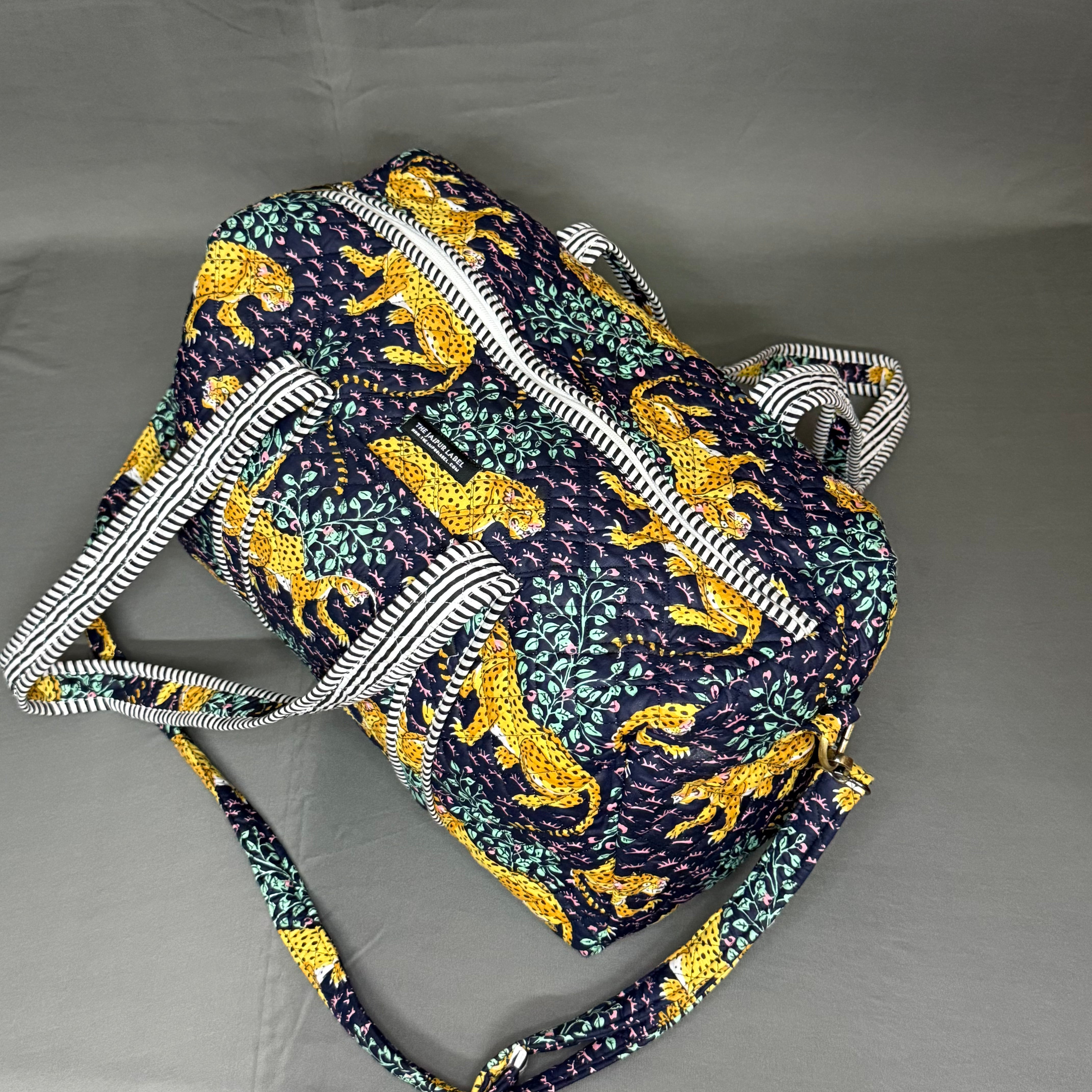 Blue Color Jungle print cotton quilted Zipper Tote Bag