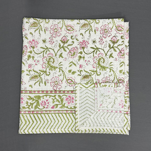 Bagh-e-Gul Towel Set – Pink & Olive Hand Block Floral | Jaipur Van Phool Collection 2025